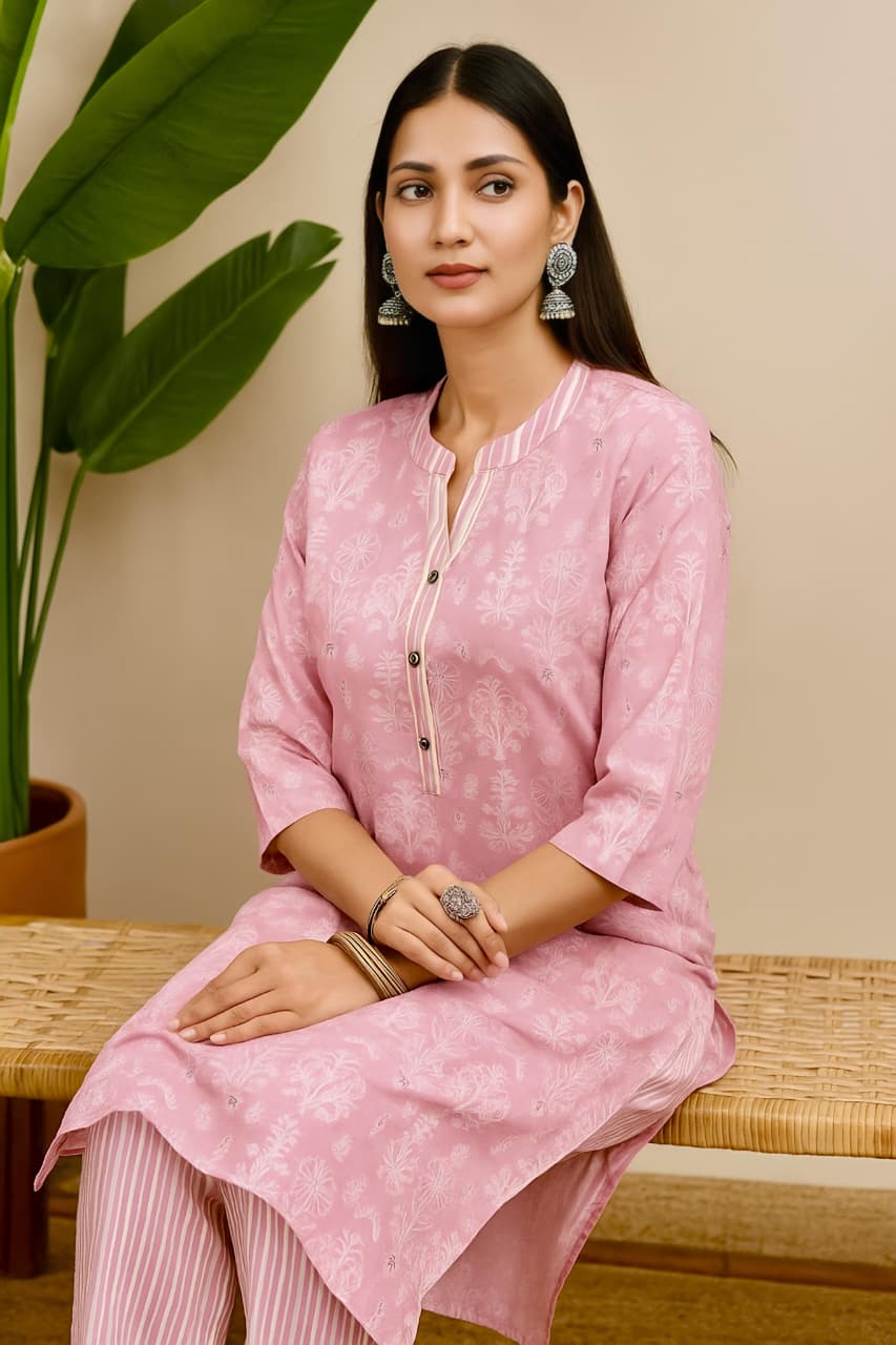 Design: Clean, classic kurti paired with a comfortable pant
